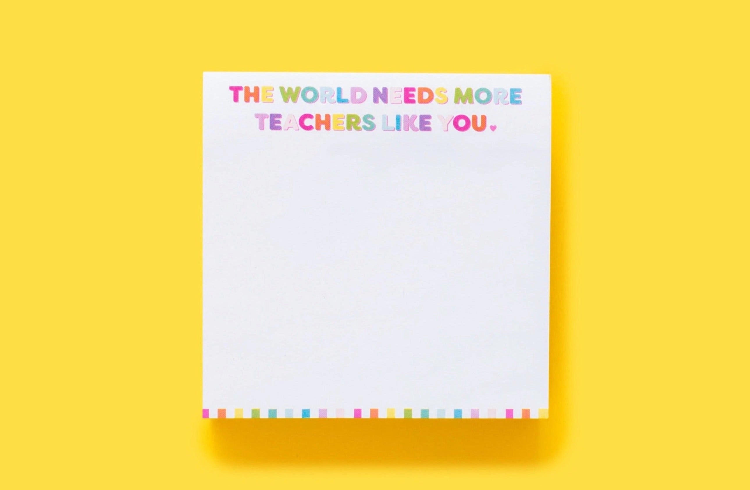 This colorful pad includes the phrase "The world needs more teachers like you" on top of every note. Pair it with a pen or pen set and make it a gift set! Our sticky notes are perfect for desk accessories, stationery, gift bundles and more! Combine with our other Teacher items to create a complete gift set!