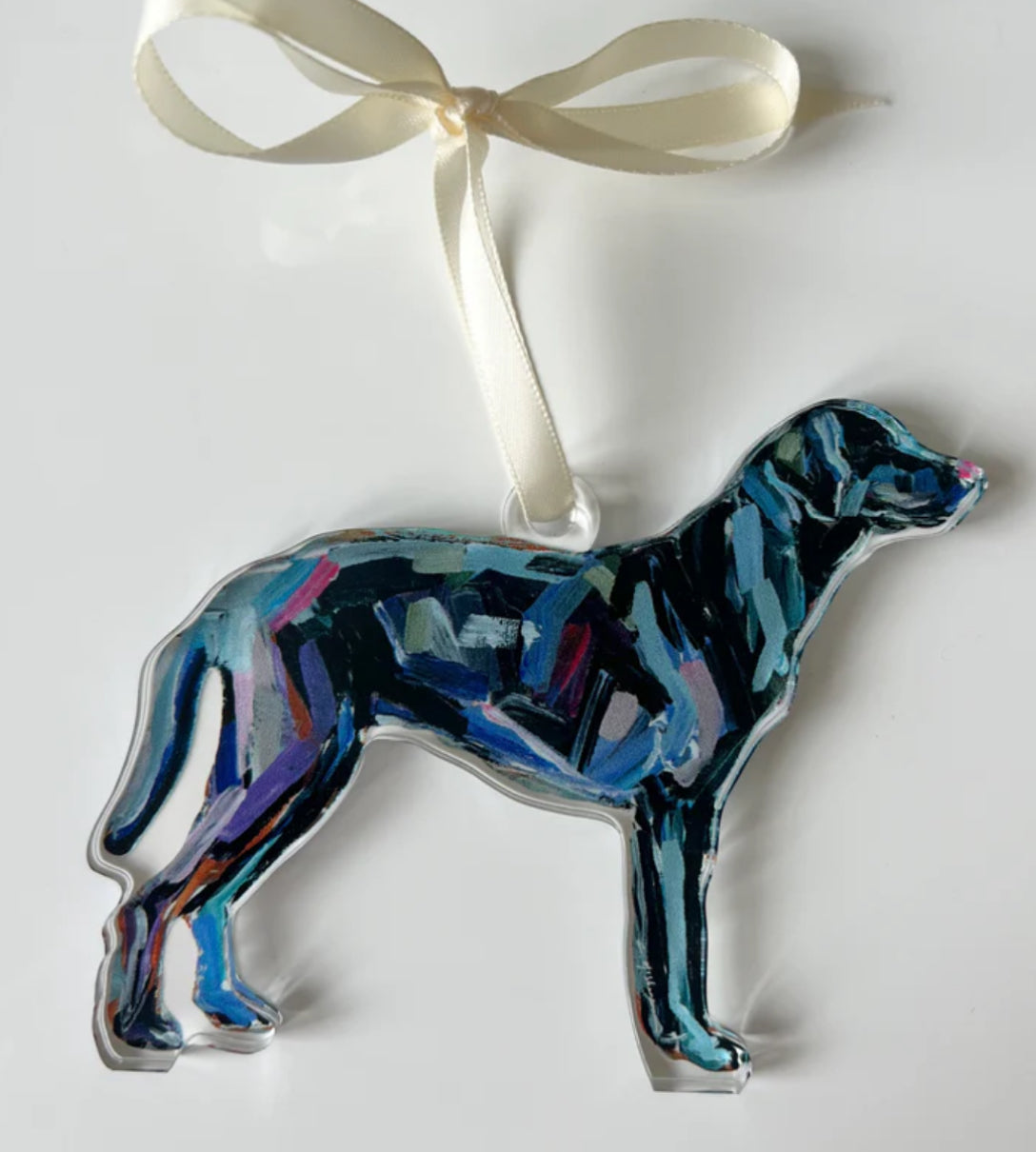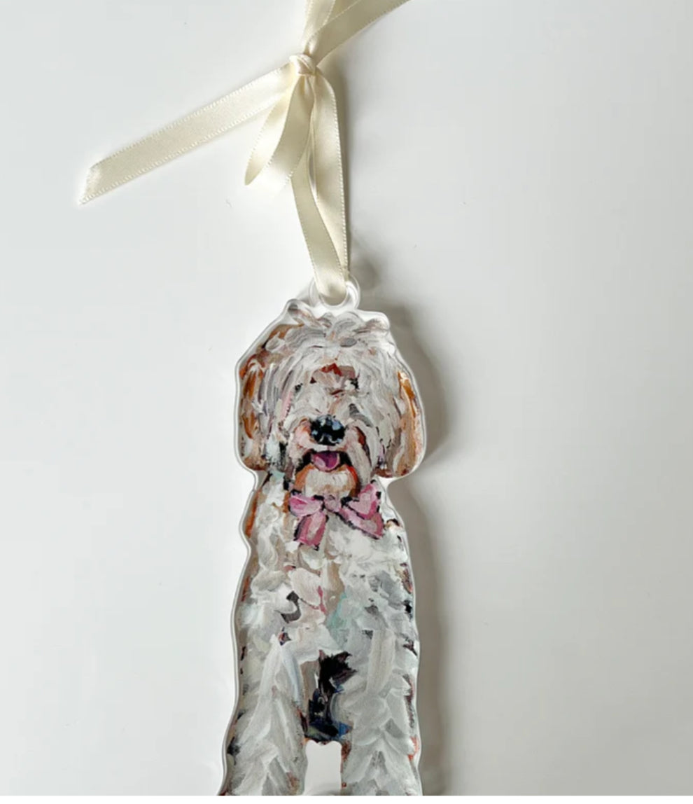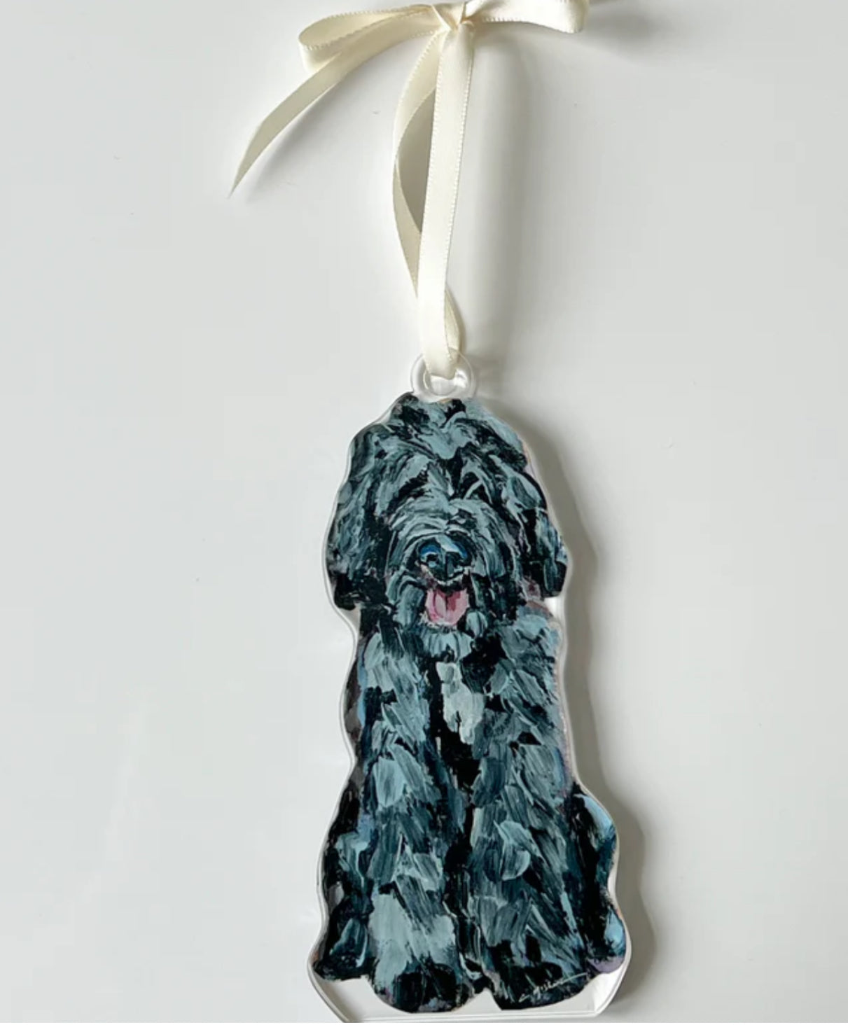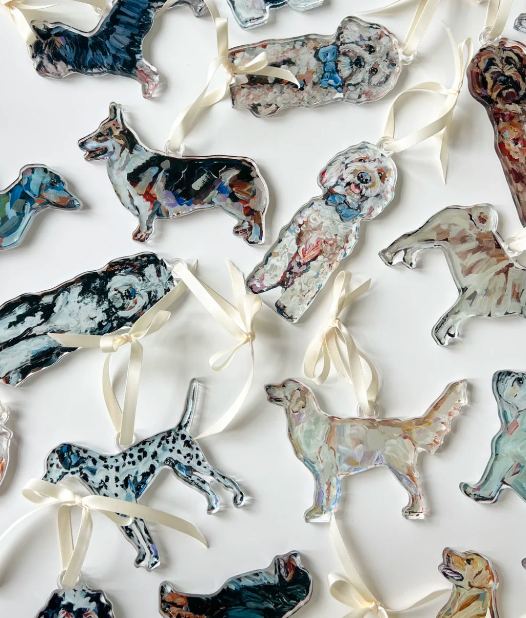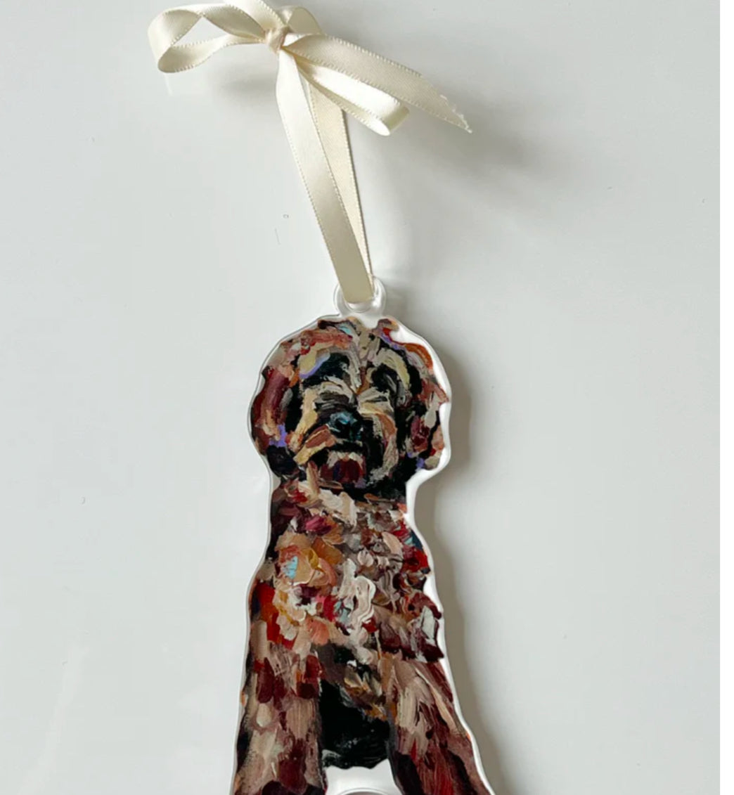 Acrylic ornament printed with Chelsea McShane's original art design. They are all so precious! We have one to represent each family dog, but leave them out year round! Give as a great ornament or tie on top of a gift for the dog lover as a bonus. Best friend getting a new friend? Add one to your collection!
