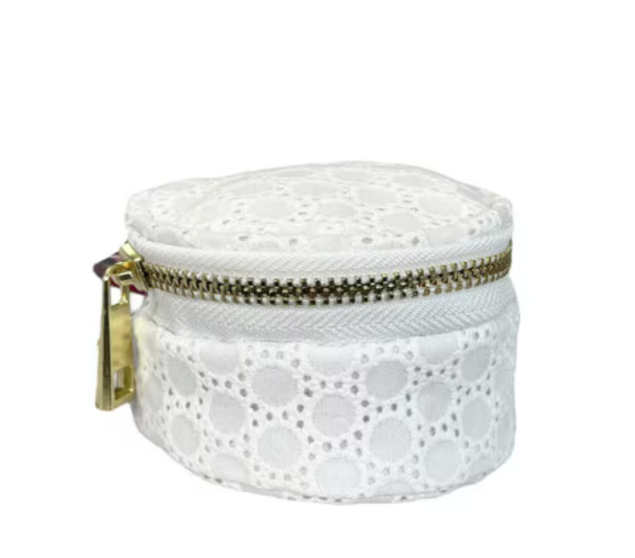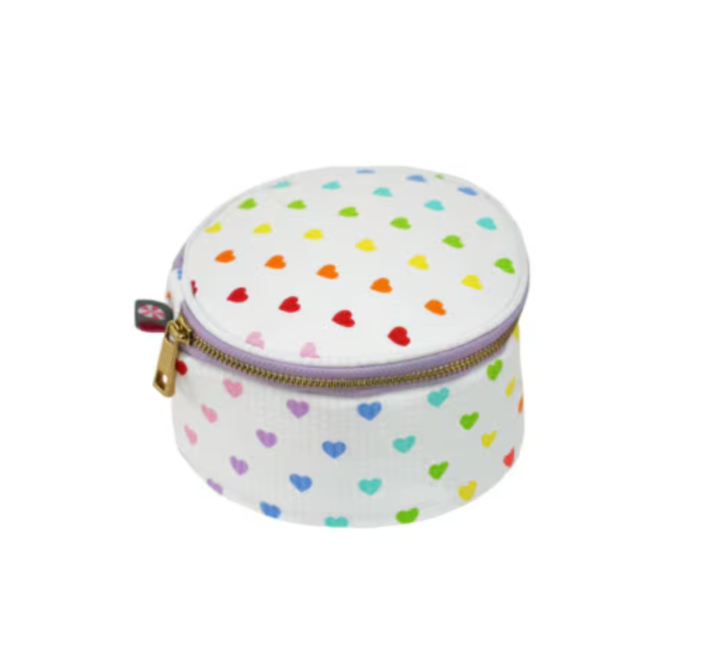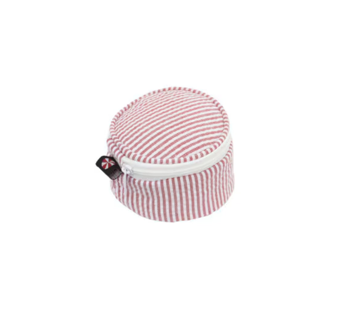 As everyone knows, we love all things miniature. The Mini Button is lined, and perfect for jewelry, loose change, a single macaroon (jk), candy, or makeup. Sweet little gift for every age! 3" diameter by 1.5" h. Just the right size to thrown in an athletics bag or purse!