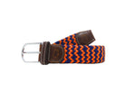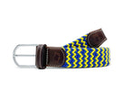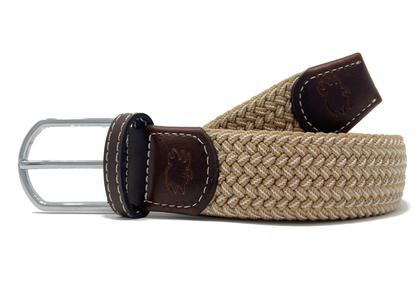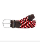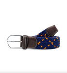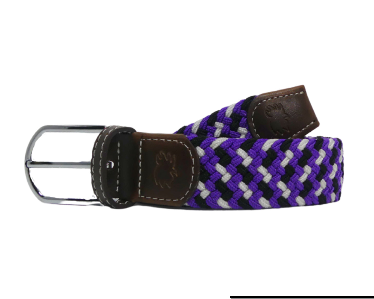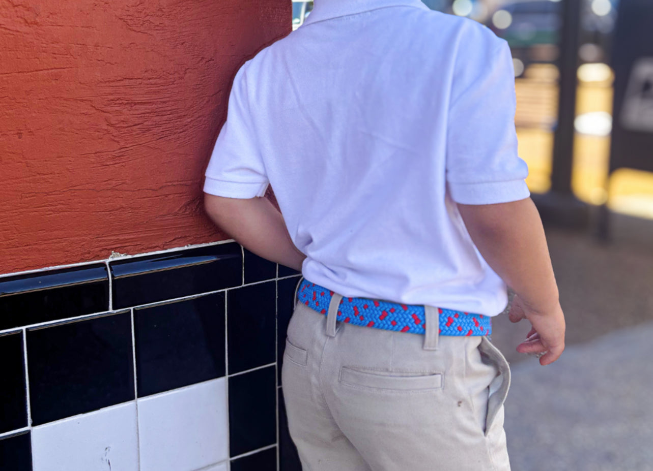 Kid’s Woven elastic stretch belt. Rounded buckle with dark brown leather stamped with the Roostas logo. An adjustable clasp goes through the woven elastic, to allow for adjustable sizing. Designed for comfort on and off the course.