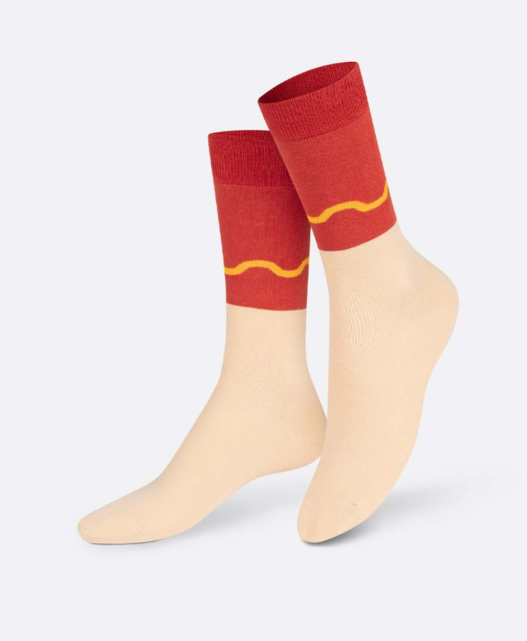 Hot Dogs are the fuel of life and the tastiest game night food to ever exist, whether if it is with ketchup or mustard. We present to you the Hot Dog socks, here to help you show your passion for this tasty piece of food.