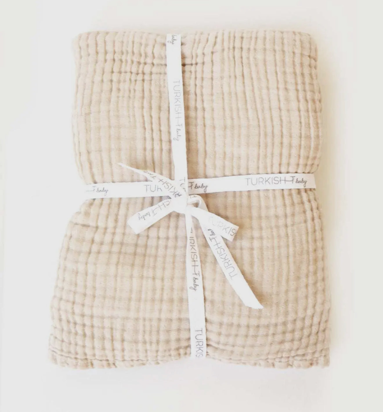 Vintage Muslin Baby Throw is one of our babies favorite products. It is made of 100% muslin cotton. Comfortable and soft to the touch, this light weight layered crinkle weave fabric helps babies skin breath on hot days.
