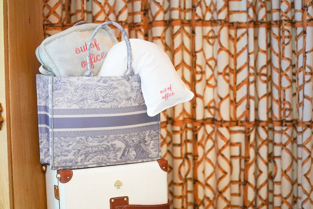 *add embroidery to any or all pieces! Monograms and names are great, but this is a fun piece to add a kitchy saying as well! We love these examples of "out of office" and "do not disturb."