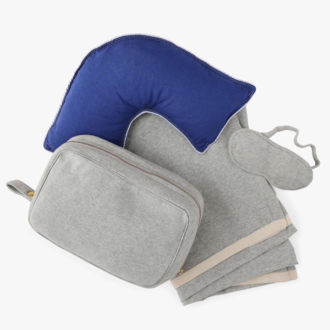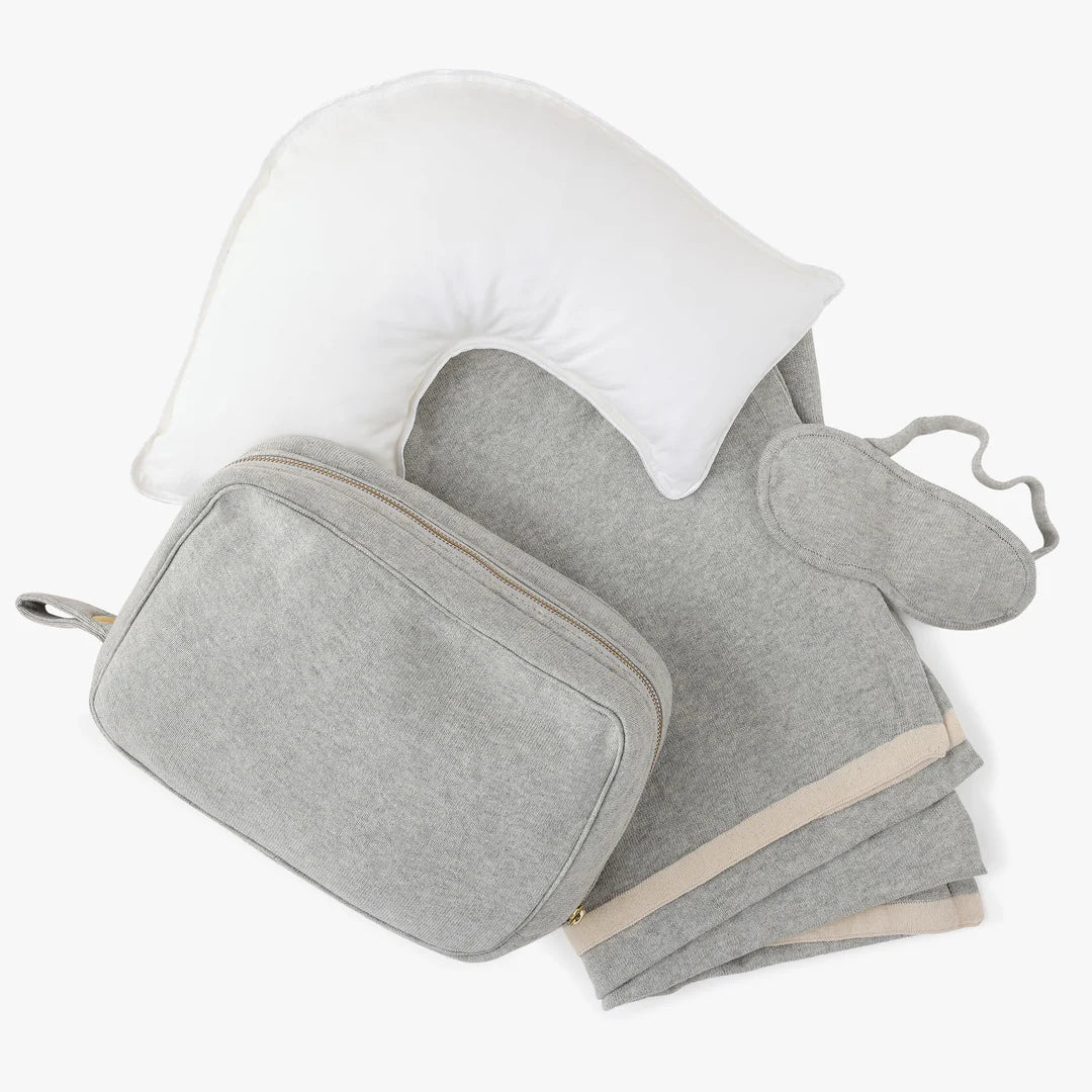 Treat your favorite globetrotter to the ultimate gift for their on-the-go lifestyle. The stylish and functional heather grey cashmere-like cotton Globetrotter Travel bag contains all the essentials for a restful sleep during their journeys.