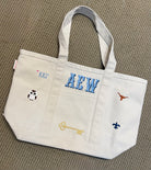 This Classic Medium Sized Tote is a best seller here at PnJ so we decided to take it up a notch with Greek icons! Add a monogram, name or initials if you choose(advisable because it's too cute to be trusted alone). We will add symbols significant to each sorority and even a University slogan or icon if you choose. You'll notice "Hotty Toddy!" and a Longhorn on a few samples. We'll reach out to you for any customization questions - feel free to leave details in notes as well. M