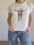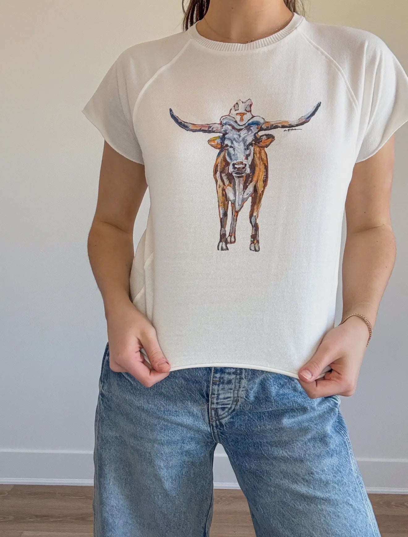 This edgy T features Chelsea McShane original artwork of Bevo. Wear with Pride.