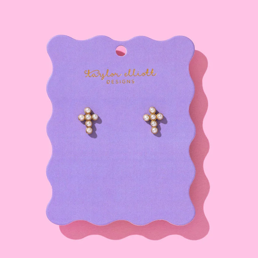 Dazzling14k gold plated and pearl cross stud earrings! These little gems are the perfect blend of chic and charm, guaranteed to catch the eye of every fashionista. Whether you're looking to add a bit of glam to your everyday look or searching for the perfect gift, these earrings are a must-have.