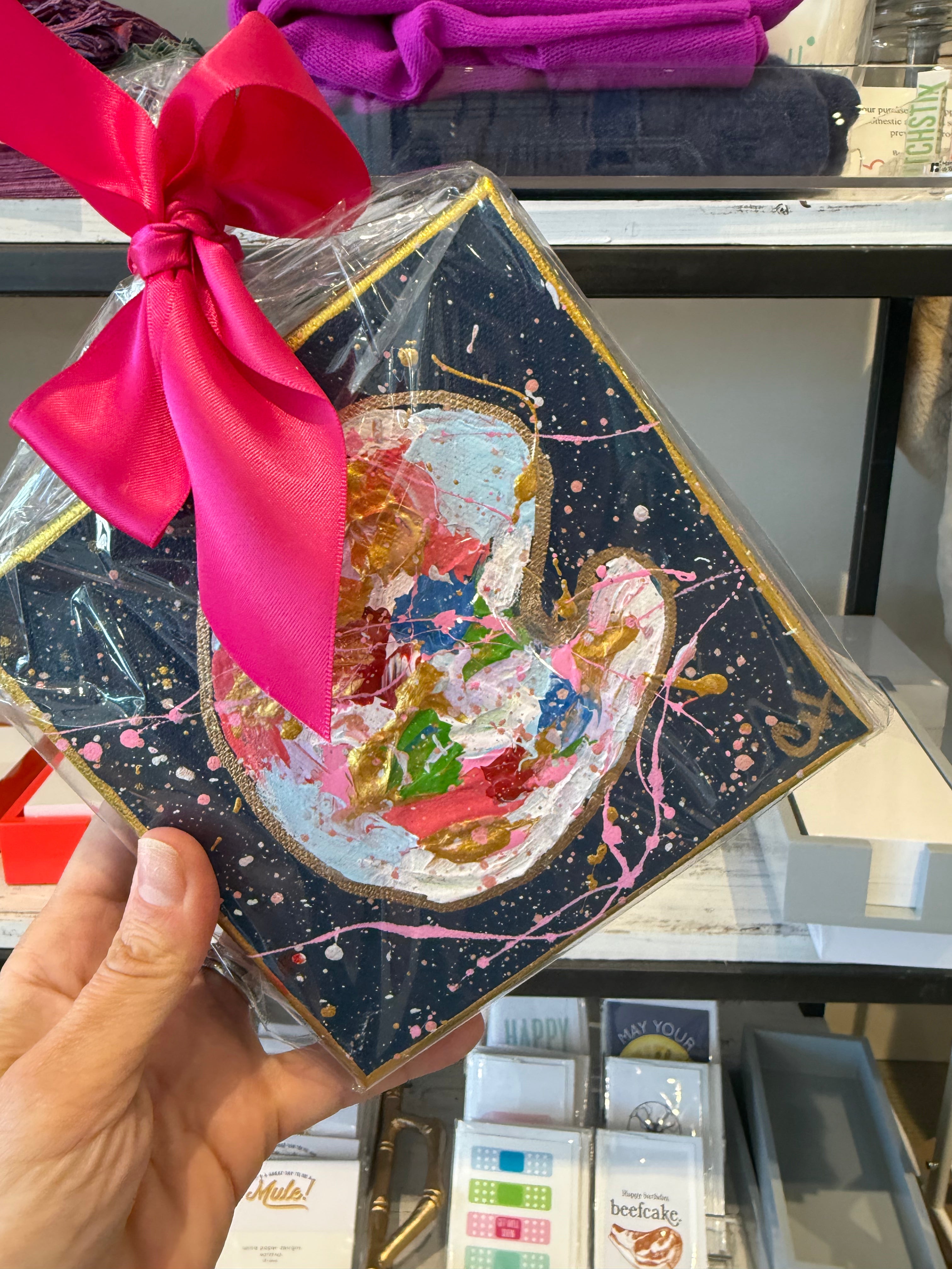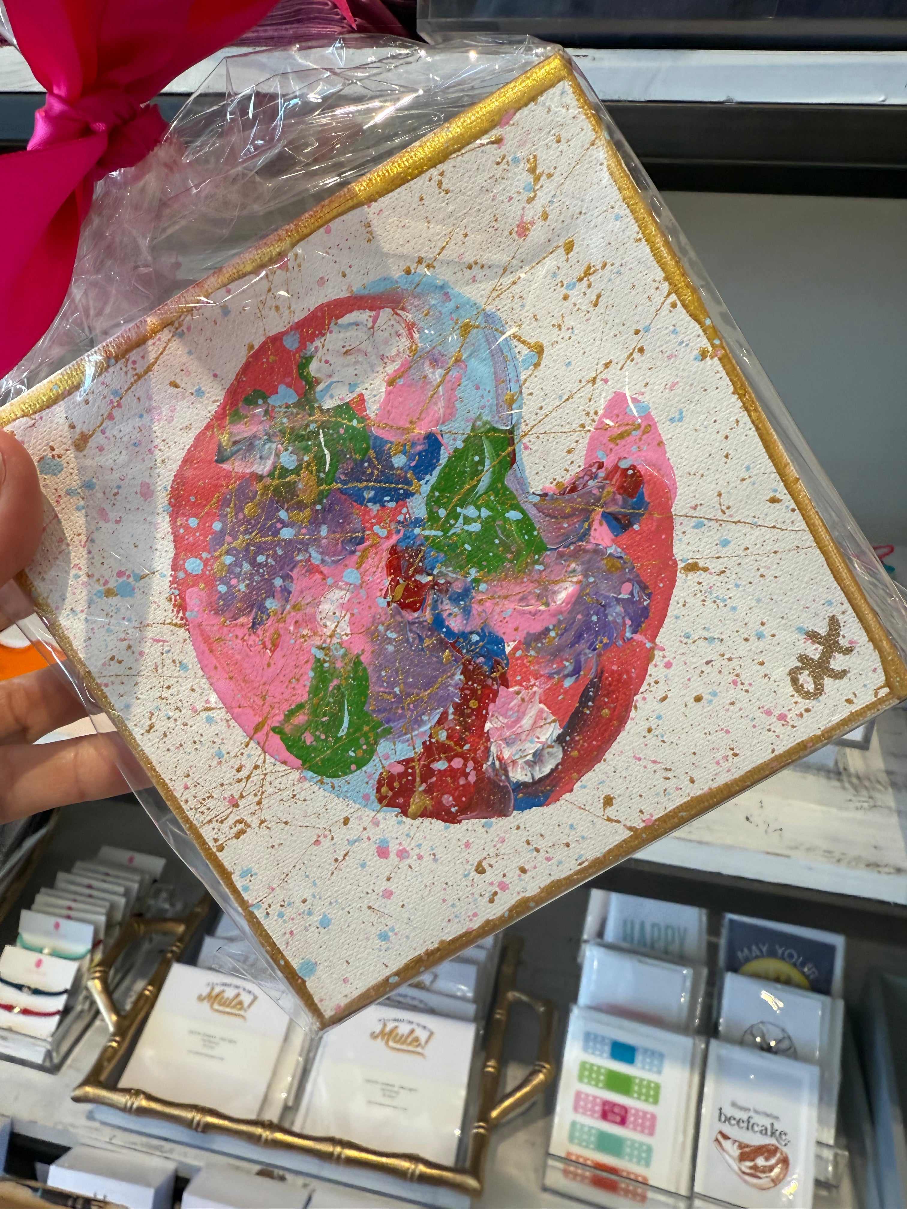 What a fun gift to let someone special know he or she is a Masterpiece! The canvas features an artist's pallette on a background of green, navy or white.