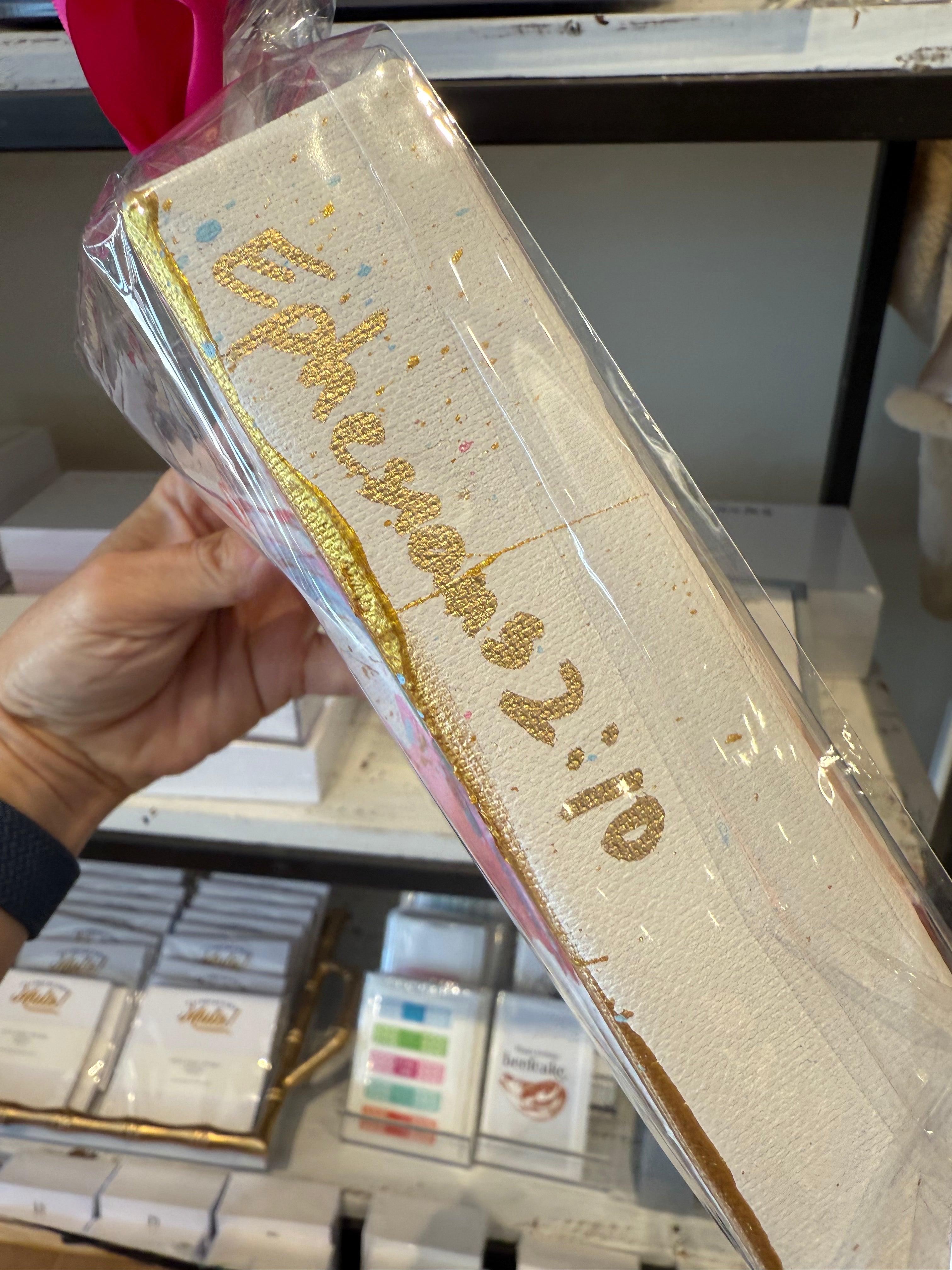 One canvas edge has gold lettering "You're a Masterpiece!" and another "Ephesians 2:10" which reads "For we are His workmanship, created in Christ Jesus for good works, which God prepared beforehand, that we should walk in them."