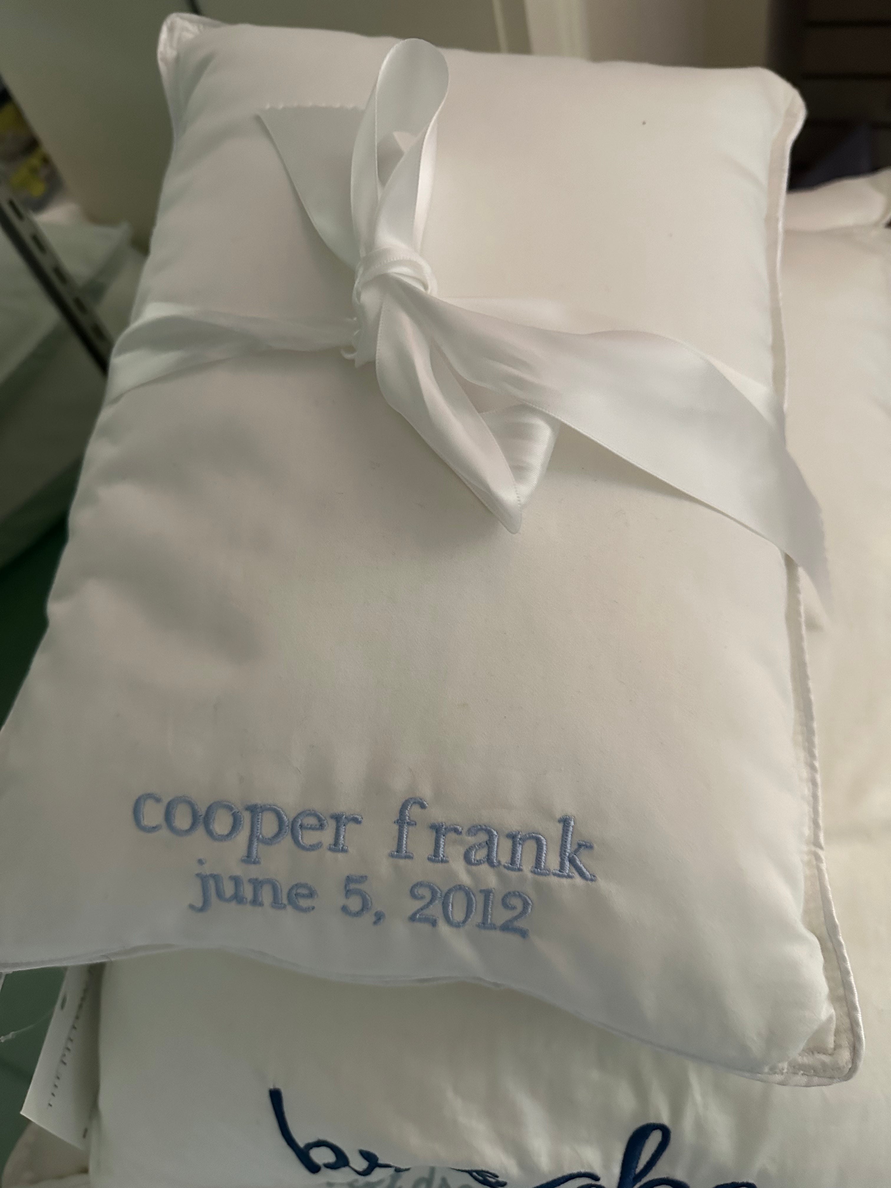 *Please note embroidery placement in your notes and know if we do not receive a note, your embroidery will be centered on the end of your pillow.