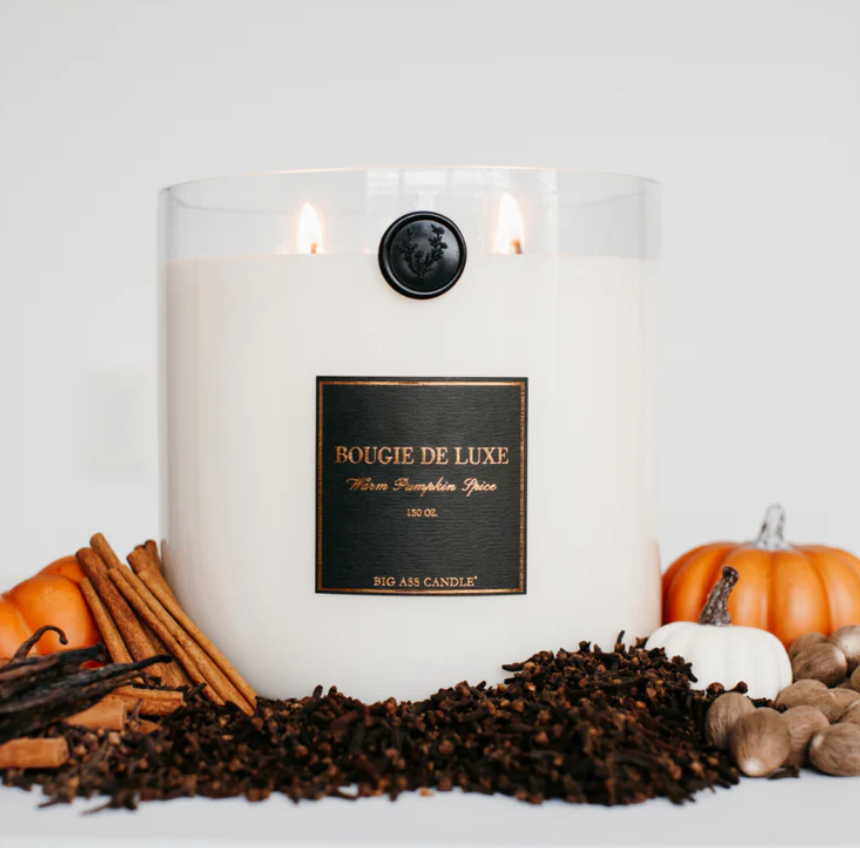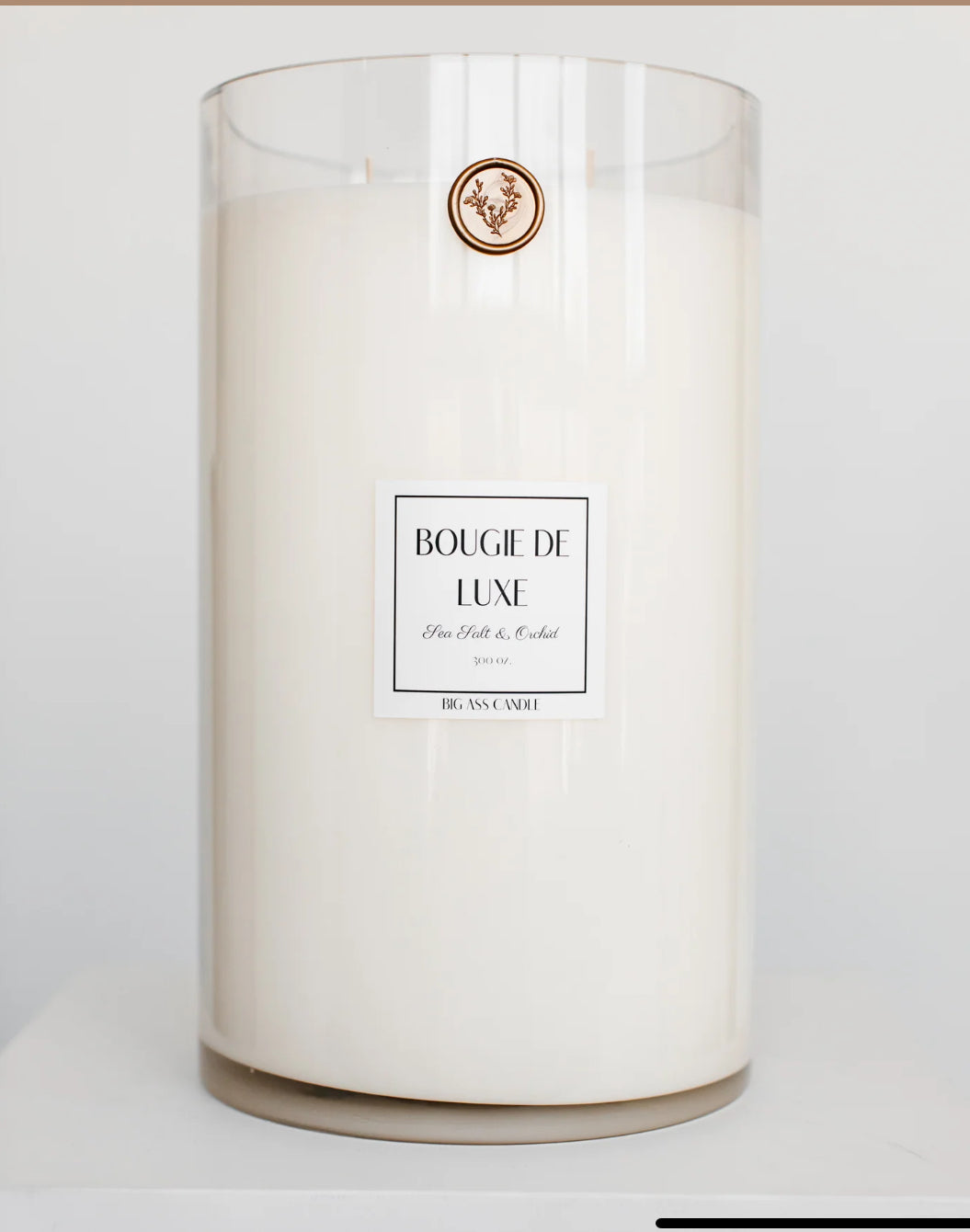 sure to make a statement anywhere you put it. Not only does it smell great, but it has people saying “that’s a big ass candle.” Made from natural coconut soy wax, phthalate and paraban free oils and 100% organic cotton wicks. The large candle vessel exudes a comforting ambiance, elegance, and will, most importantly, fill the room with its fragrance lit and unlit.