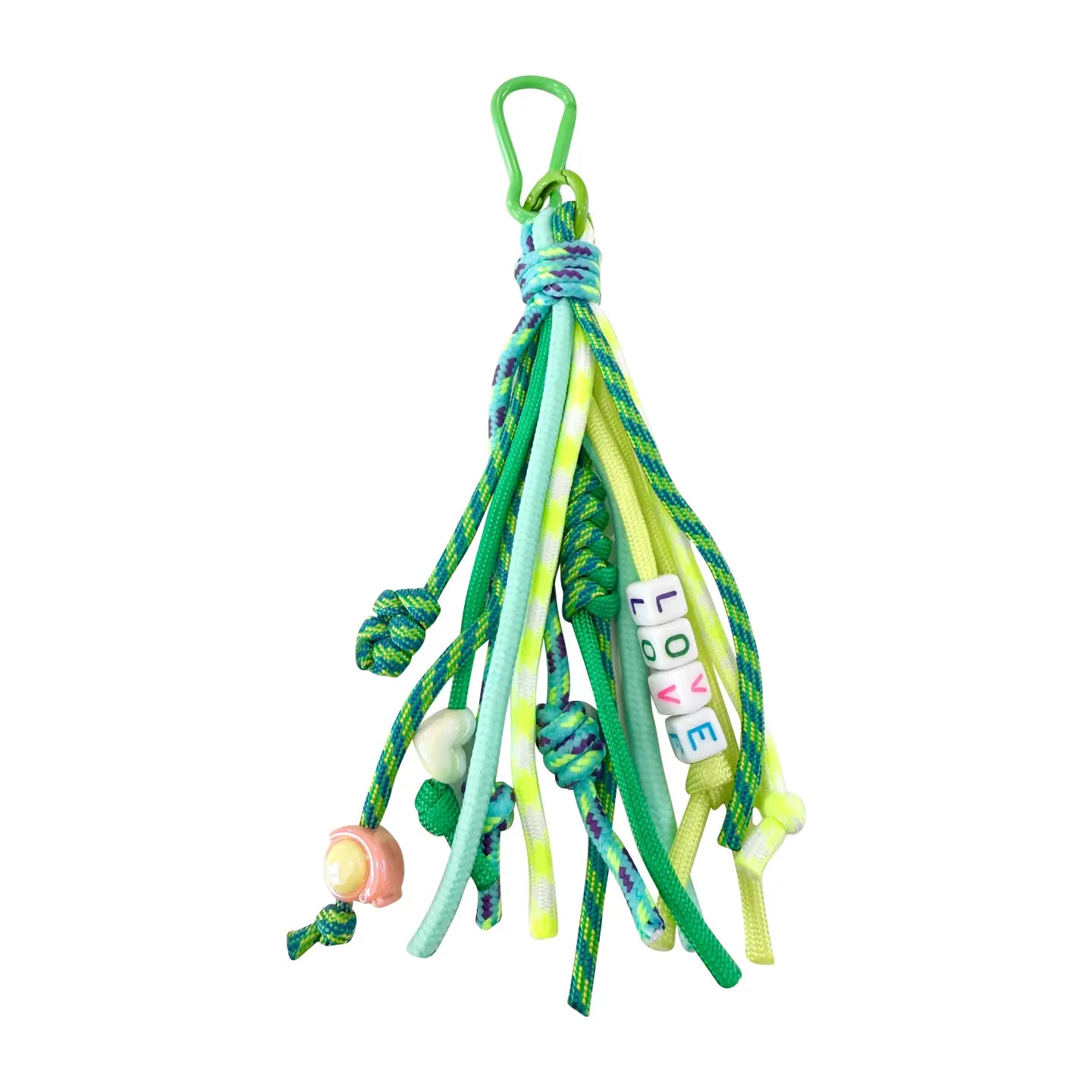 Fun and vibrant, the Sporty Bag Charm in Green Love adds a playful touch to any accessory. Featuring a green key ring with LOVE beads, a heart charm, and a mix of green, yellow, and blue tassels, this stylish charm brings personality and charm to handbags, purses, backpacks, school bags, or suitcases. Designed for versatility, it instantly enhances any look while showcasing your unique style. Equipped with a sturdy metal key ring and a secure clip, this multi-purpose accessory easily attaches to bags, keys, or even car interiors for a fashionable finishing touch.