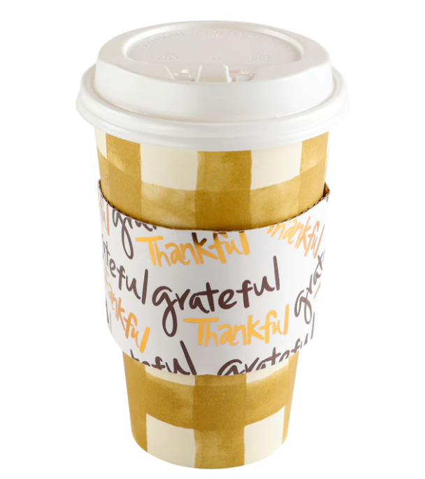 Wrap your hands around our BROWN PLAID hot/cold cup, adorned with a THANKFUL, GRATEFUL sleeve and lid. Keep your drinks hot or cold while spreading a message of gratitude and warmth. Perfect for on-the-go sips that inspire the senses. Fun hostess gift for any Thanksgiving or Friendsgiving affair!