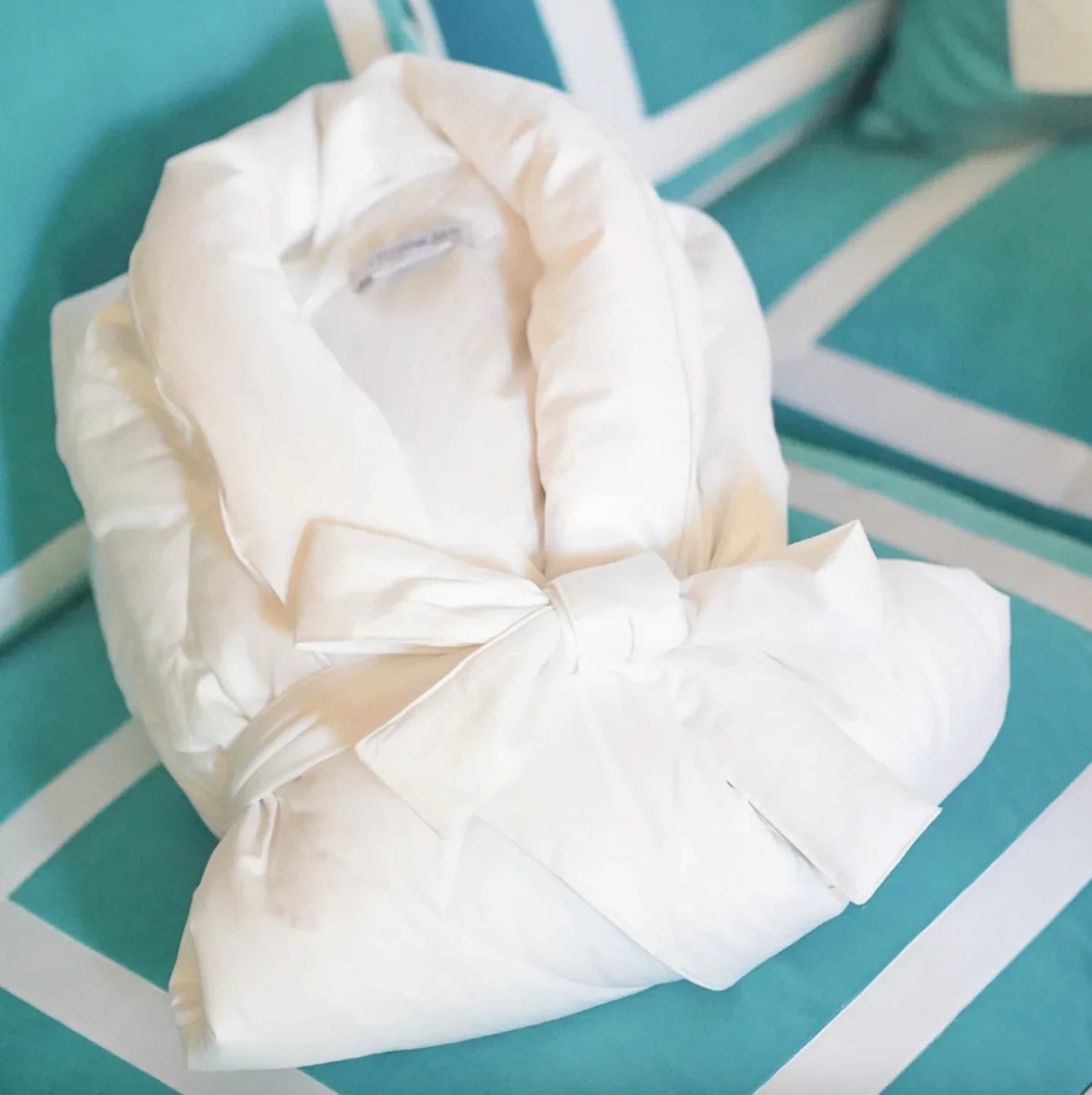 If the gift is to be used in the home such as guest towels, hand towels, trays it is always appropriate to use the woman’s monogram as she is the lady of the home and the hostess with the mostest.