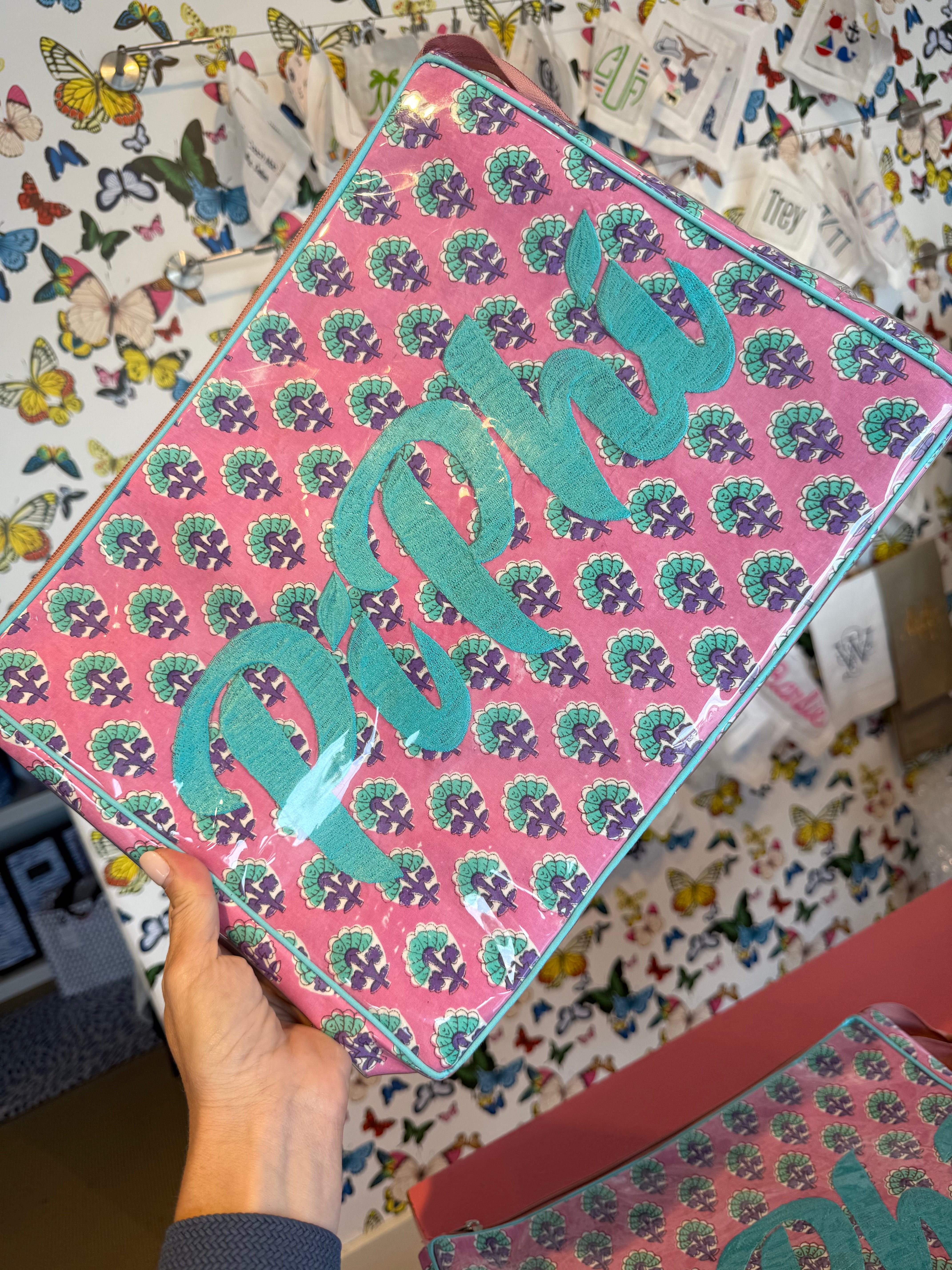 *This item is available under listing Pink & Turquoise Embroidered Large Cosmetic should you want to choose different personalization.