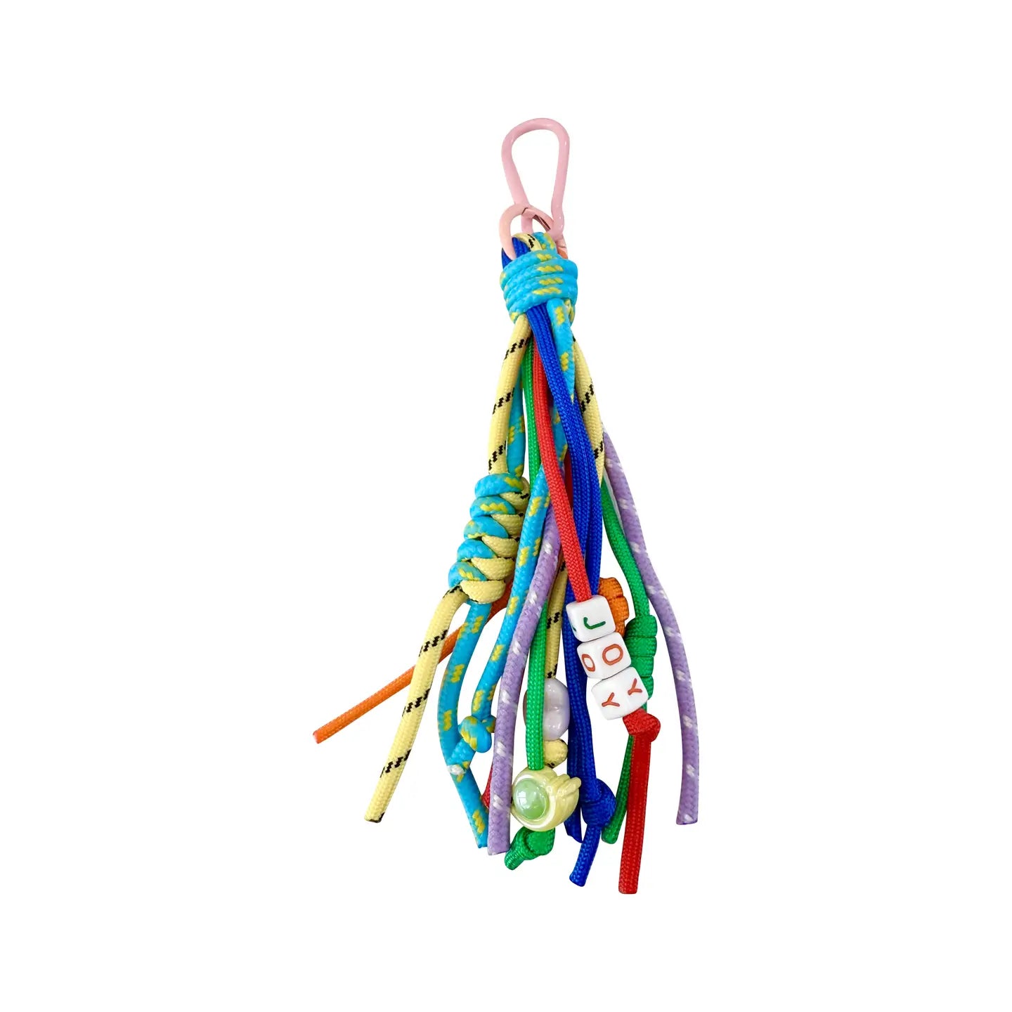 Bright and cheerful, the Sporty Bag Charm in Multi-Colored Joy adds a fun, uplifting touch to any accessory. Featuring a pink key ring with JOY beads, a heart charm, and vibrant multi-colored tassels, this playful charm instantly enhances handbags, purses, backpacks, school bags, or suitcases. Designed for versatility, it brings a pop of color and personality to any look. Equipped with a sturdy metal key ring and a secure clip, this stylish charm easily attaches to bags, keys, or even car interiors, making it a perfect statement piece for everyday use.